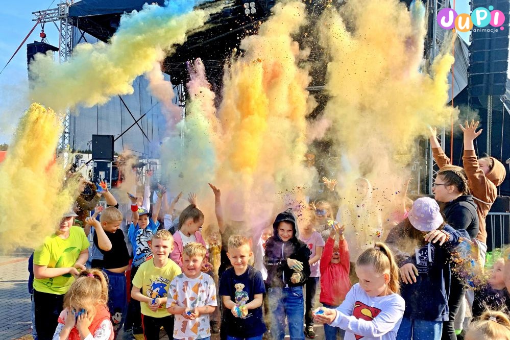 Niesamowita atrakcja uwielbiana przez dzieci oraz nastolatków. W odpowiednim momencie rozdajemy uczestnikom kolorowe proszki, opisujemy przebieg akcji i na 'raz dwa trzy' wszyscy wyrzucają w górę mnóstwo kolorowego pyłu. Efekt jest spektakularny!