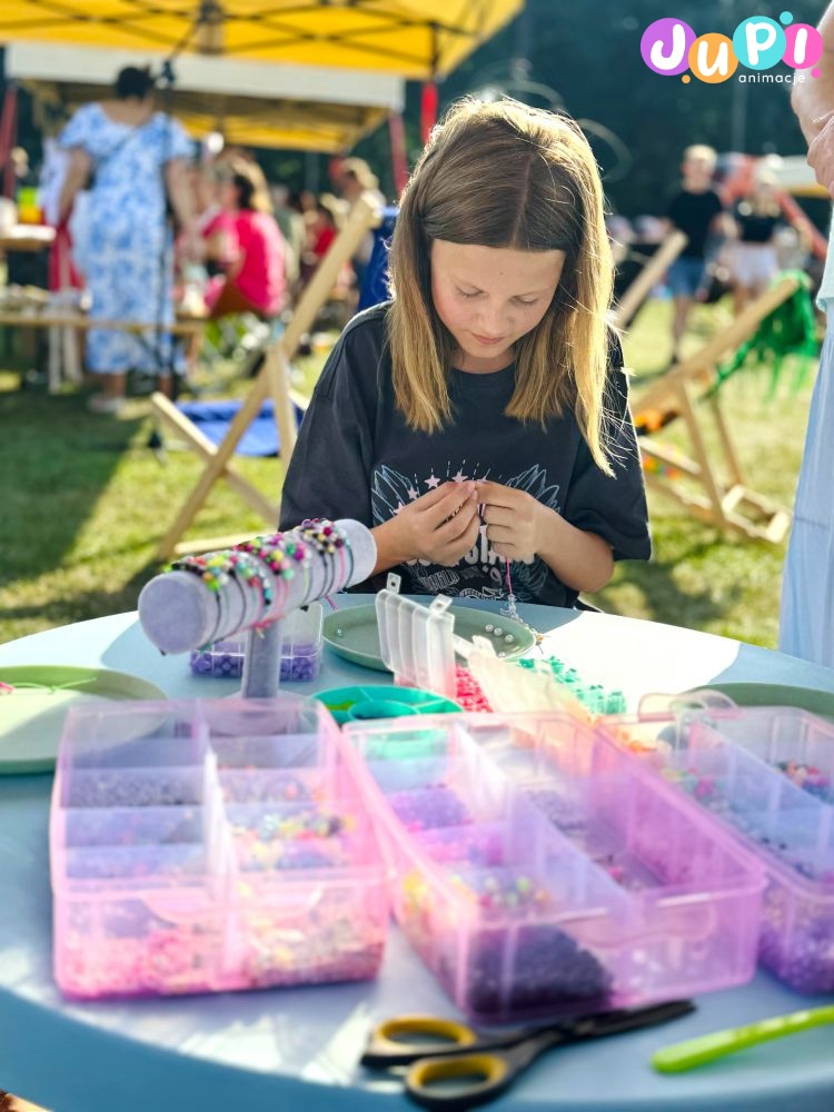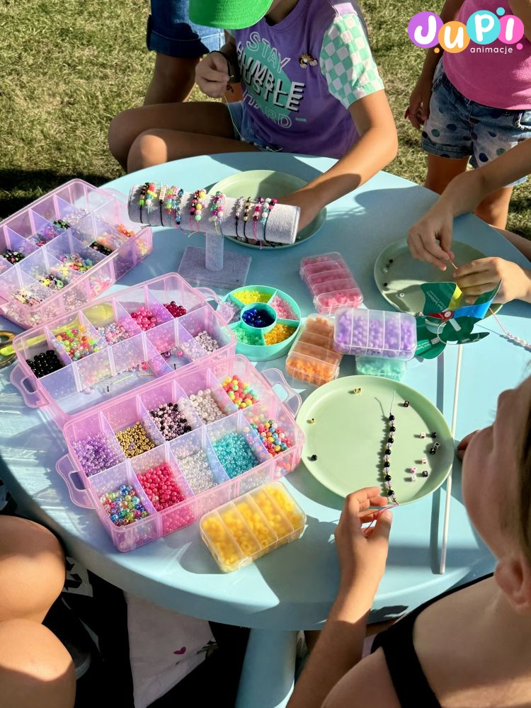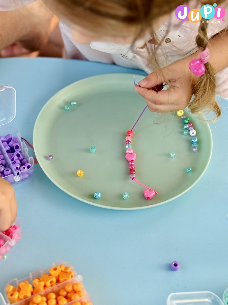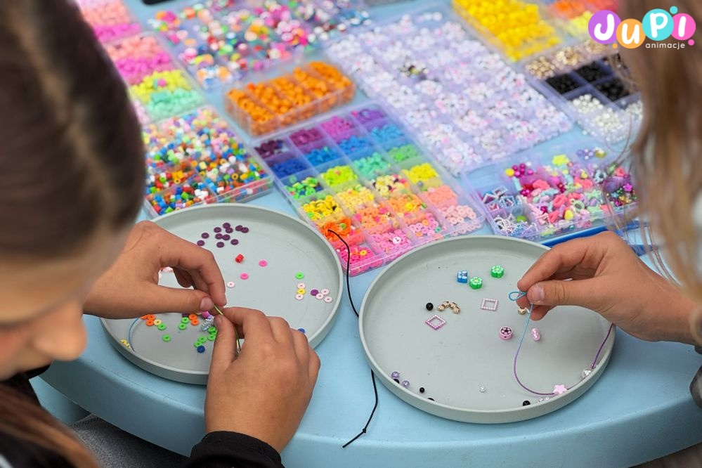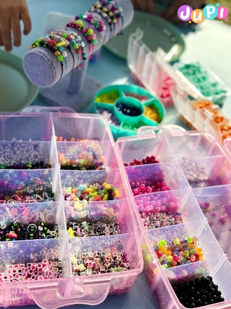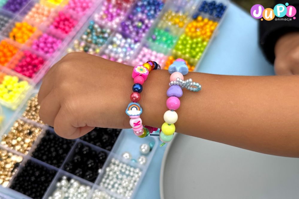 Czyli warsztaty, podczas których dzieci razem z animatorką tworzą piękne koralikowe bransoletki. Do wyboru wiele różnorodnych kolorów i wzorów, dzięki czemu chłopcy i dziewczyny znajdą coś dla siebie. Taką bransoletkę można zrobić dla siebie lub ją komuś podarować ; )
