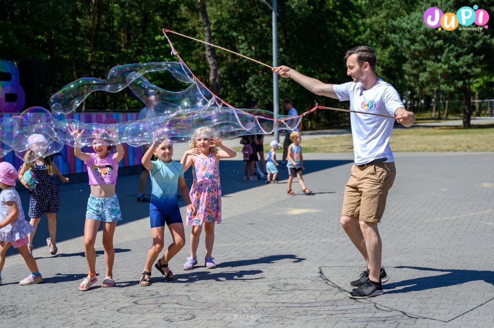 Niesamowite pokazy ogromnych baniek mydlanych robionych przez animatora. Świetny dodatek np. do animacji zabaw lub jako przerywnik w programie. Za pomocą specjalnych akcesoriów można stworzyć gigantyczne bańki. I udowodnią to nasi animatorzy :) Powstaną wielkie bańki mydlane, które zachwycą uczestników!