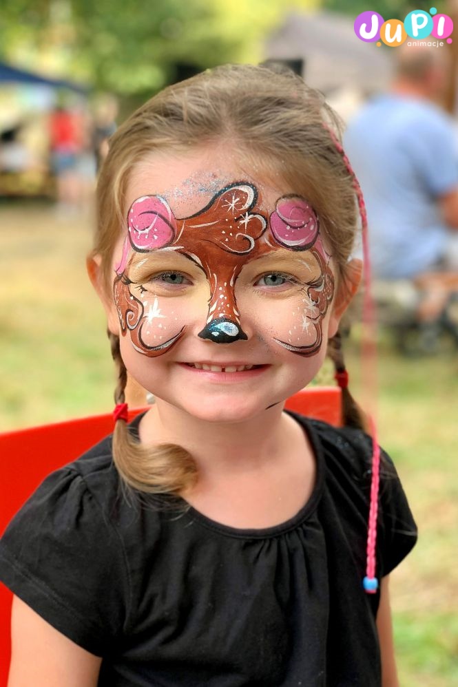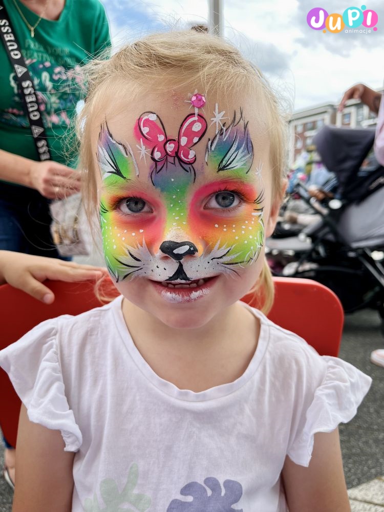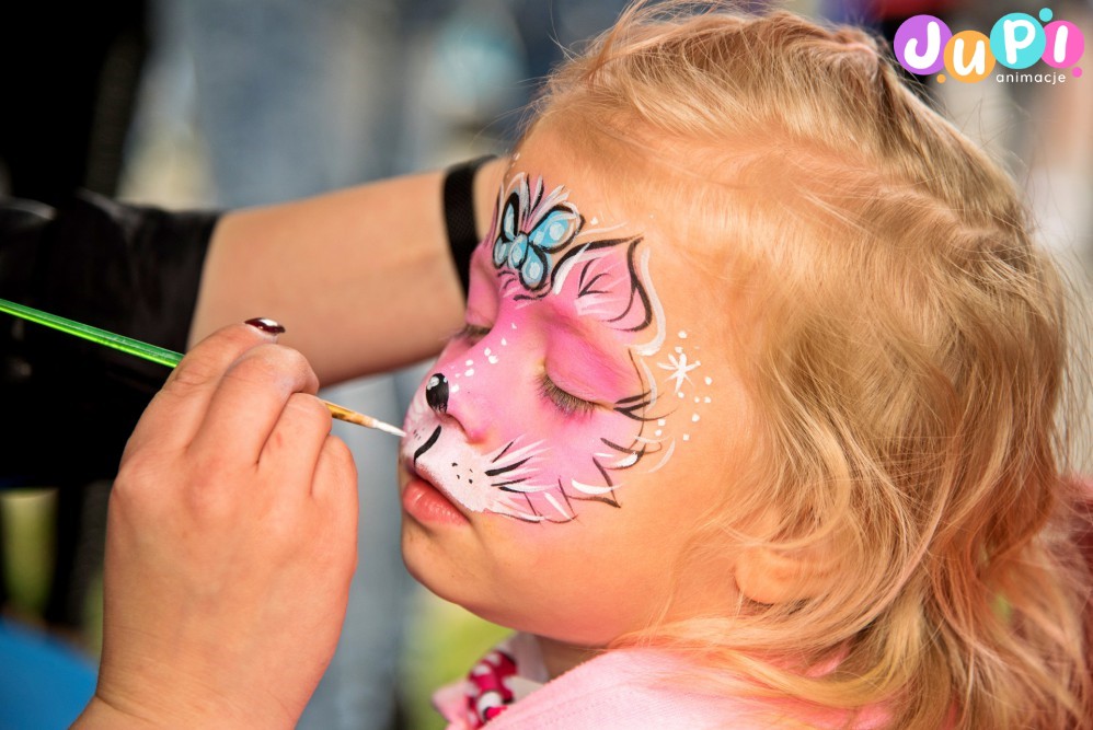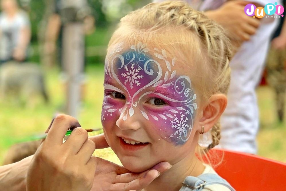 Jedna z najbardziej uwielbianych atrakcji! W ciągu kilku chwil każde dziecko może zostać kim tylko chce! Spiderman, Księżniczka, Tygrysek, Jednorożec - do wyboru wiele fantastycznych wzorów (zarówno dla dziewczyn, jak i chłopców). Dodatkowym uzupełnieniem będą kolorowe brokaty, które sprawią, że każdy wzór będzie jeszcze piękniejszy. Alternatywą dla malowania twarzy jest malowanie wzorów na rękach, co również daje super efekt =)
