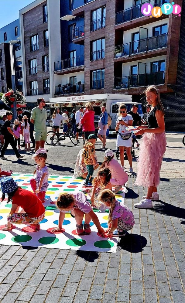 Twister XXL to wersja klasycznej i znanej gry, która przywołuje uśmiech na twarzach zarówno dzieci, jak i dorosłych. Gra zapewnia doskonałą zabawę i dużą dawkę ruchu, gdyż zawodnicy muszą stawiać stopy i ręce na kolorowych kropkach na dużej matach, spełniając polecenia wskazywane przez wirującą wskazówkę. Śmieszne pozy, niekiedy niespodziewane sytuacje i rywalizacja sprawiają, że Twister XXL to doskonała atrakcja na imprezy, spotkania rodzinne czy wieczory spędzone w gronie przyjaciół. To gra, która nie tylko bawi, ale także integruje, tworząc niezapomniane chwile i wspomnienia.