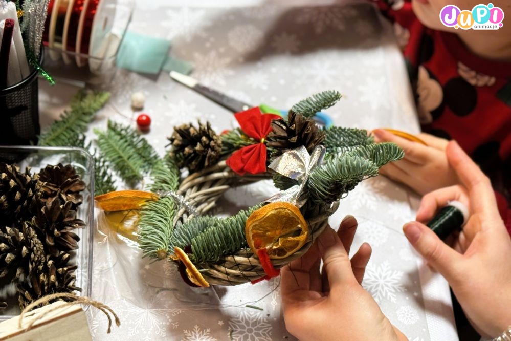 Podczas naszych warsztatów mikołajkowych dzieci będą miały okazję pracować z naturalnymi materiałami, takimi jak pachnące gałązki jodły, szyszki, suszone owoce, laski cynamonu i inne dekoracje, które nadadzą stroikowi niepowtarzalny charakter. Pod czujnym okiem prowadzącego każdy stworzy kompozycję dopasowaną do własnych upodobań i pełną świątecznego blasku.