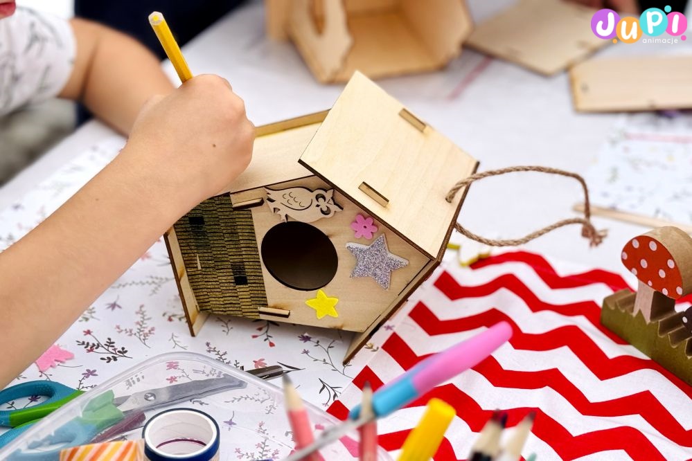 W trakcie tych warsztatów dzieci będą mogły własnoręcznie udekorować drewniane karmniki dla ptaków! Każde dziecko otrzyma drewniany karmnik, który stanie się płótnem do wyrażenia swojej artystycznej wizji. Drewniane dodatki, naklejki, tasiemki oraz różne ozdoby czekają, aby zamienić zwykły karmnik w prawdziwe dzieło sztuki. Po skończonych warsztatach każdy uczestnik zabierze swój pięknie udekorowany karmnik do domu, by móc cieszyć się widokiem odwiedzających go ptaków.