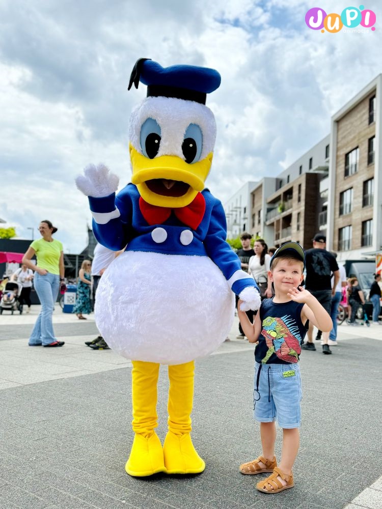 Pełen energii i swojego niepowtarzalnego, komicznego stylu, Kaczor Donald uwielbia psocić i bawić się, zarażając swoim entuzjazmem wszystkich wokół. Jego niesłabnąca chęć do nowych przygód i odkrywania sprawia, że jest nie tylko zabawny, ale także inspirujący! Wspólnie z innymi maskotkami chętnie uczestniczy w zabawach dla dzieci, pozuje do zdjęć, przytula oraz rozśmiesza swoimi psotami!